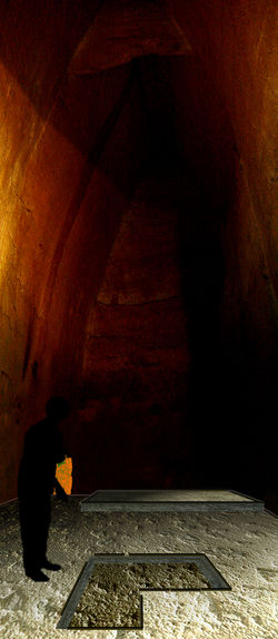 Dans la deuxième partie de la visite, le visiteur se balade à travers la galerie. Son parcours n’est plus guidé linéairement comme dans la première partie; le processus s’apparente à la découverte de certaines salles qui met le spectateur en « acteur/découvreur ». Ces interventions sont des scénographies avec des effets de lumières et de sons tels des jalons imaginaires.